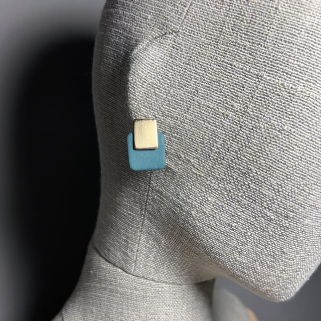 Orecchino a lobo con struttura in bronzo dorato che sostiene una placchetta in porcellana bianca o colorata con ossidi ad alta temperatura in impasto: sono leggeri e resistenti, la porcellana viene rinforzata per essere infrangibile.